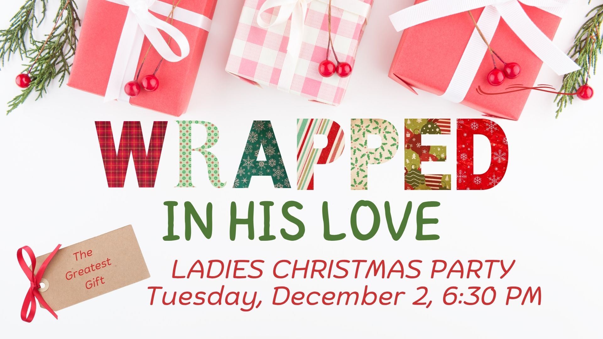 Tuesday, December 2, 6:30 PM | To RSVP for the Wrapped in His Love - Ladies Christmas Party please fill out this form and click submit.
